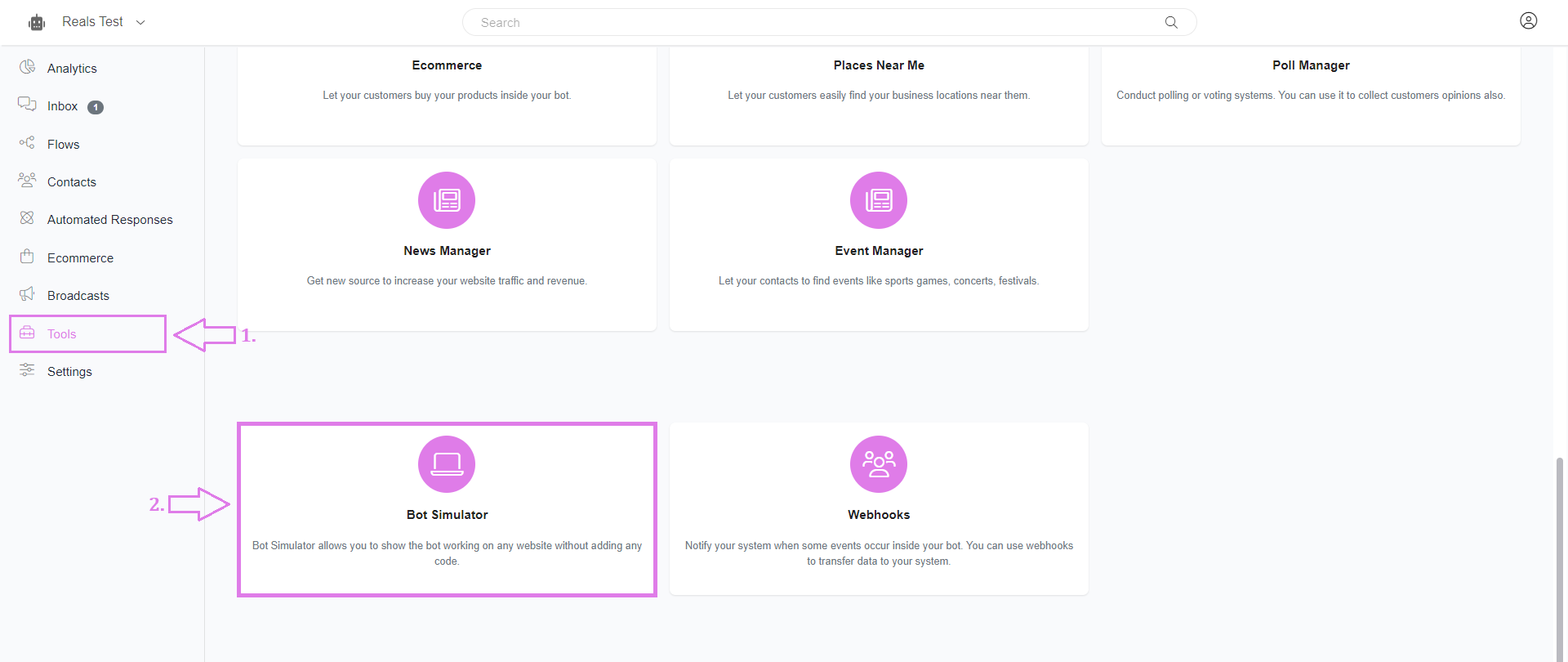 Bot Simulator is a powerful tool that showcases your bot in action on any website without the need to integrate code. This is particularly valuable for agencies looking to provide clients with a dynamic bot demo directly on their websites. Imagine the impact of testing the bot simulator on a client's website, bringing the experience to life.