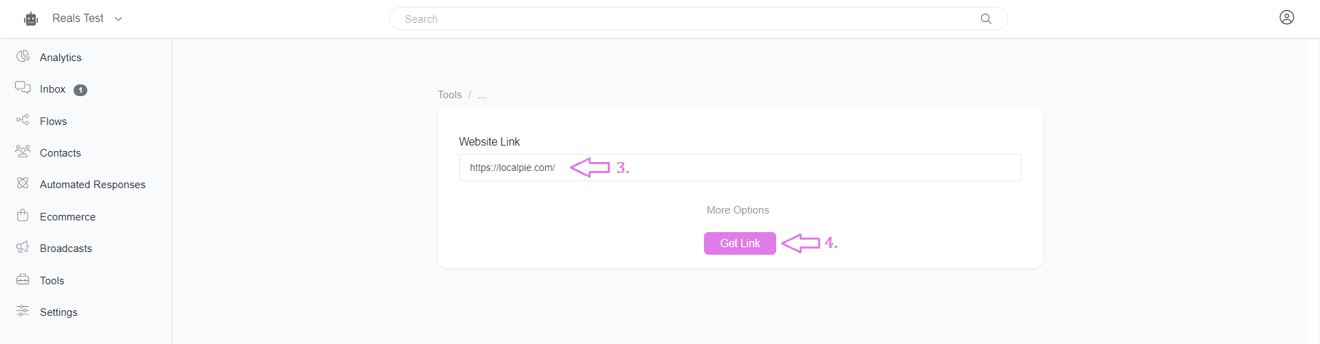 There are many situations where you may need to manually generate the bot simulator link. For example, you may have a bot where you ask your potential clients for their website, and you could generate the link inside the bot to let them know how the chatbot will work on their website.