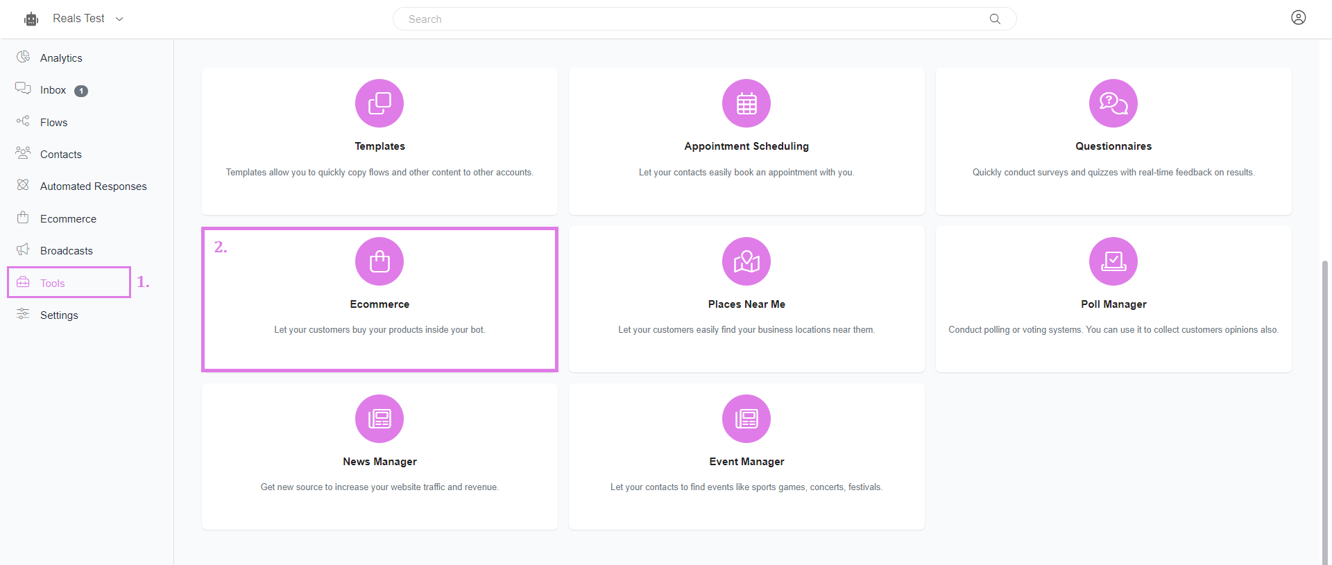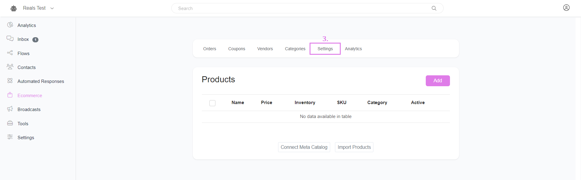 The e-Commerce settings are divided into 4 main sections for customization: