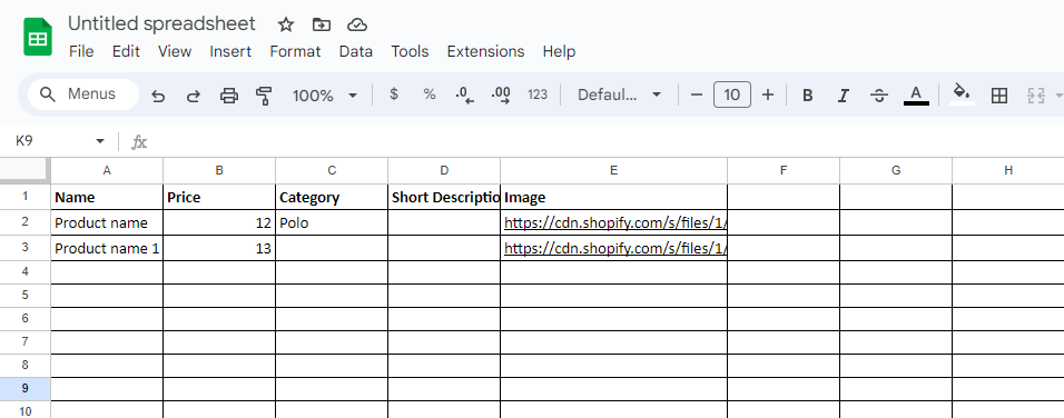 Click on Import Products > Download Template > Add your products to Google Sheet/CSV file > Import your Products.