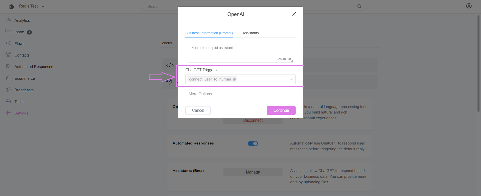 CustoM8 has included a pre-configured trigger that allows the user to stop bot automation and talk with a human agent. This Function is already active on all accounts.