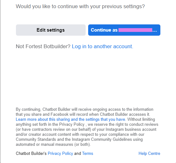 This will lead you to Facebook permissions. Please grant all permissions for all accounts to avoid needing future edits when connecting new accounts.