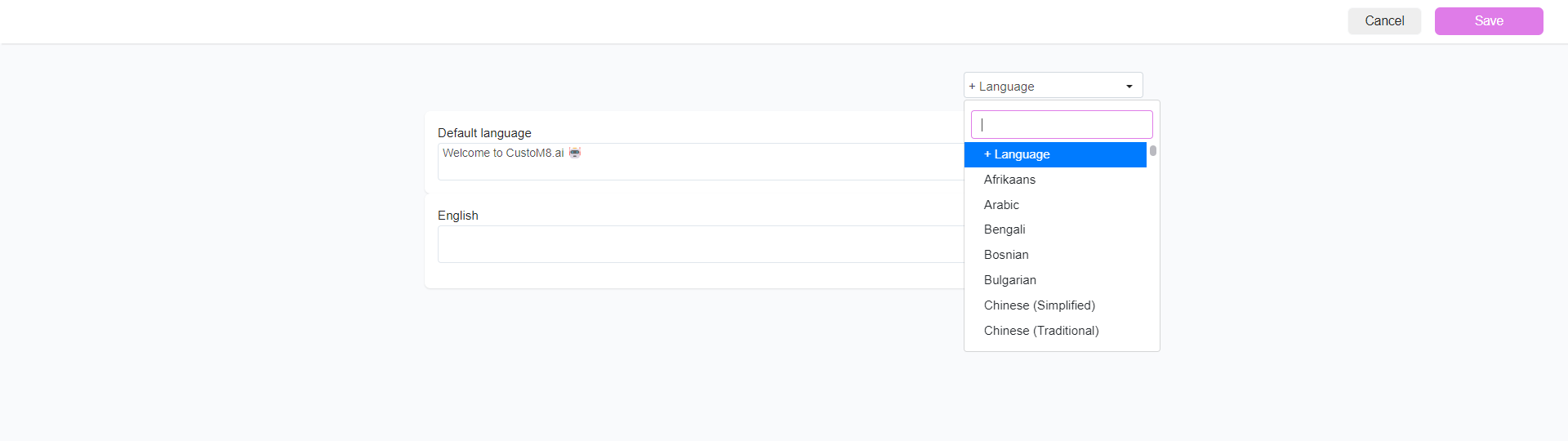 If you want to use multi-language greeting messages, select “+ Language” drop-down menu and choose the languages as per your requirement