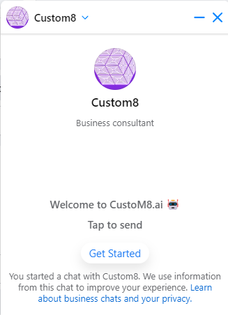 Your Messenger chatbot's greeting message acts as a brief business description, displayed to your audience in the image provided. Utilize this feature to convert visitors into subscribers and provide a concise overview of your business.