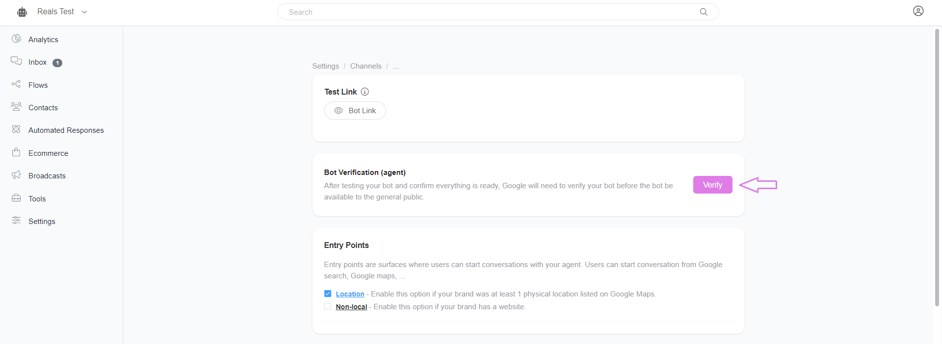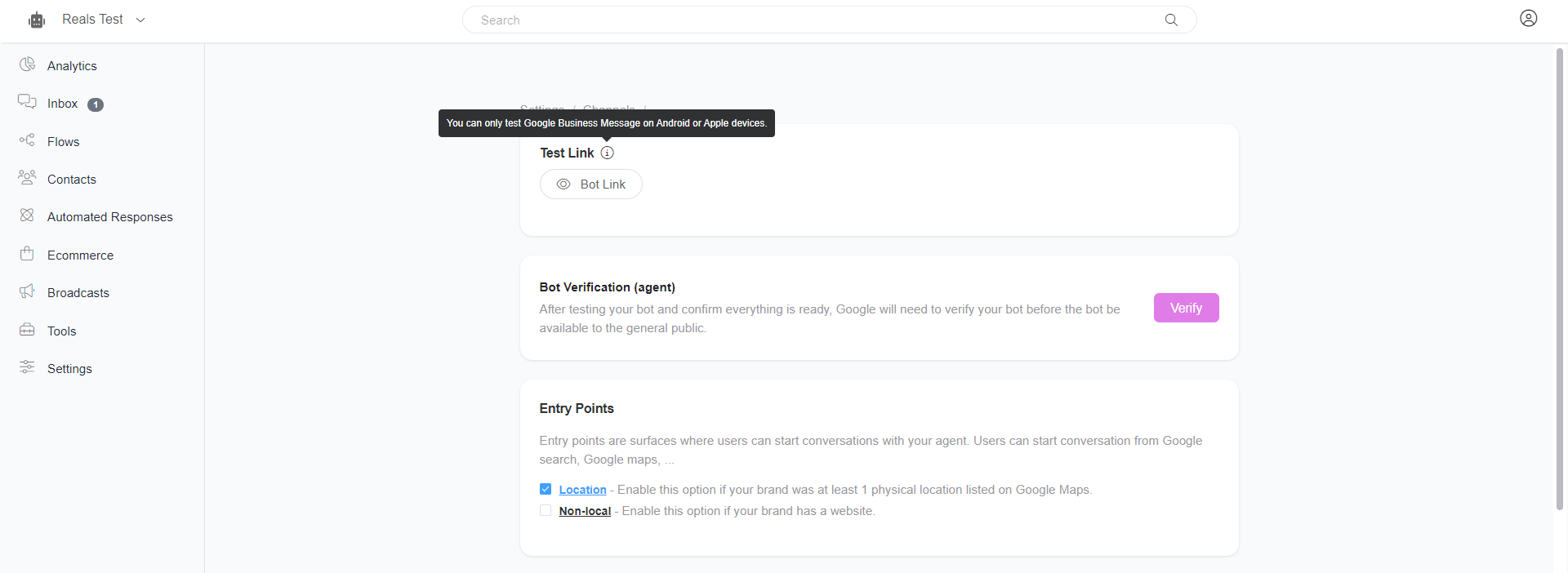 To enable users to message your agent through entry points like Google Maps, Placesheet, or Local Pack, it's essential to add at least one location. This ensures that your clients can easily initiate conversations with your agent through these specific entry points.