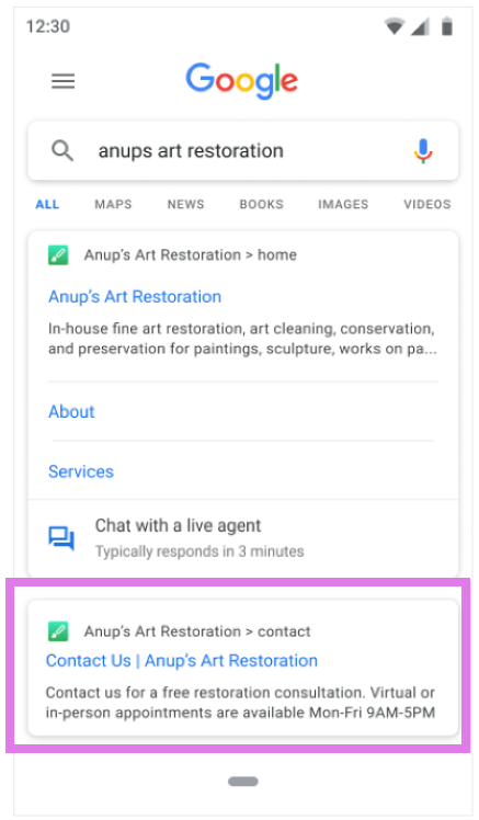 Featured snippets – This entry point facilitates conversations with your agent when a user discovers contact details through a Search.