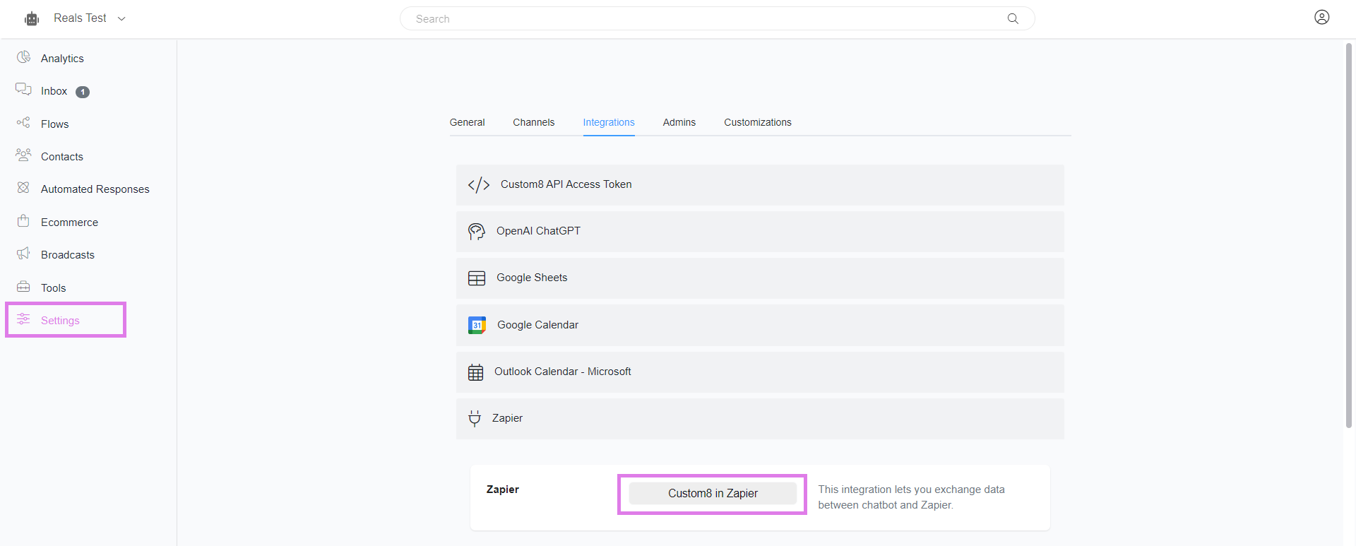 Go to Settings > Integration > Zapier