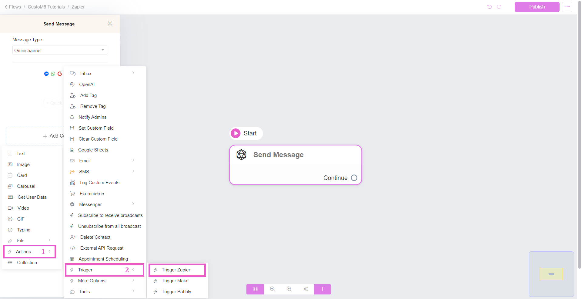 - To transmit data from your chatbot to Zapier using the CustoM8, follow these steps:
