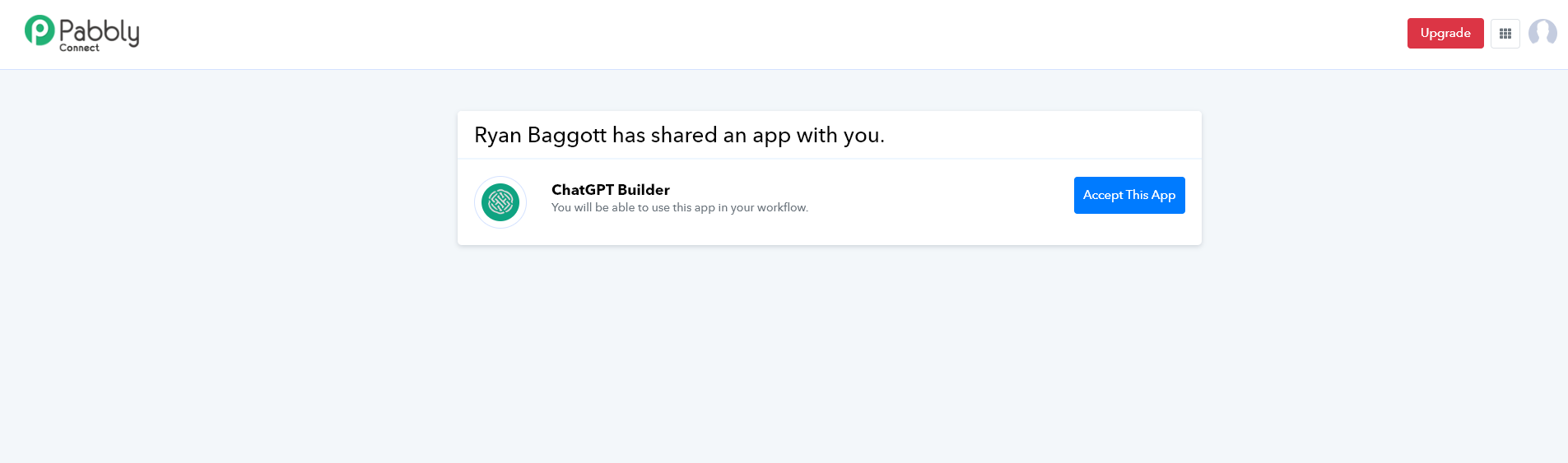 Click the “CustoM8.ai in Pabbly” button and accept the invitation to use our Pabbly Connect App.