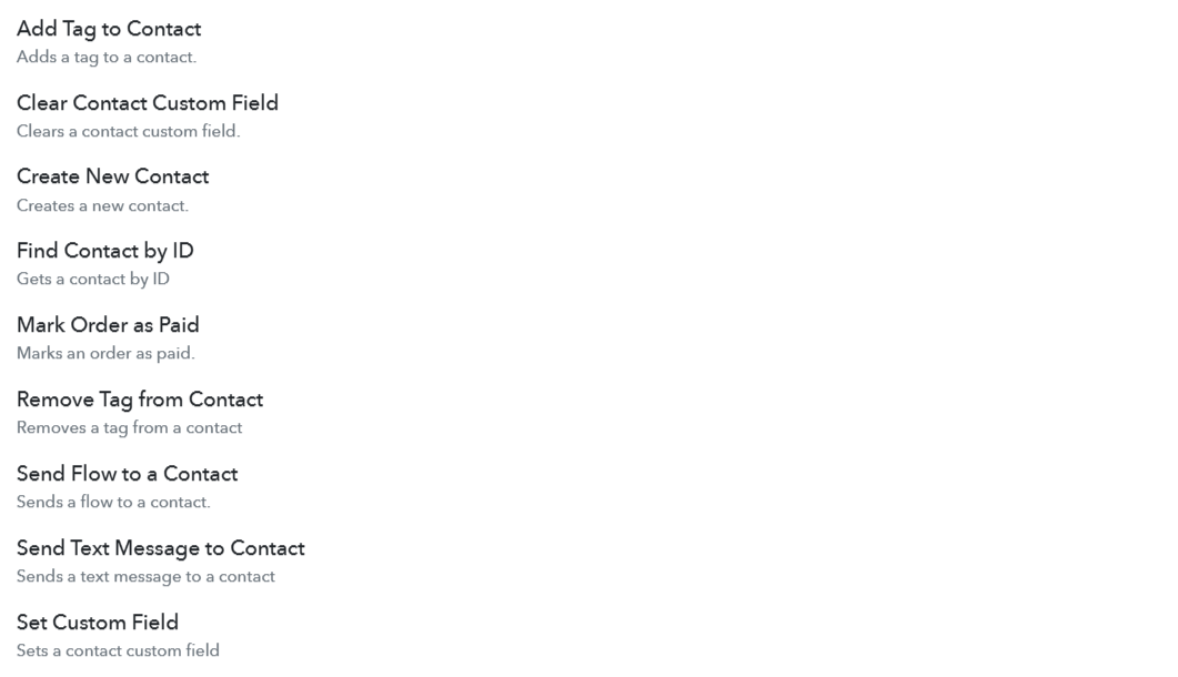 From Pabbly Connect you can add tags to a contact, set a contact custom fields, send flows to a contact, and much more.